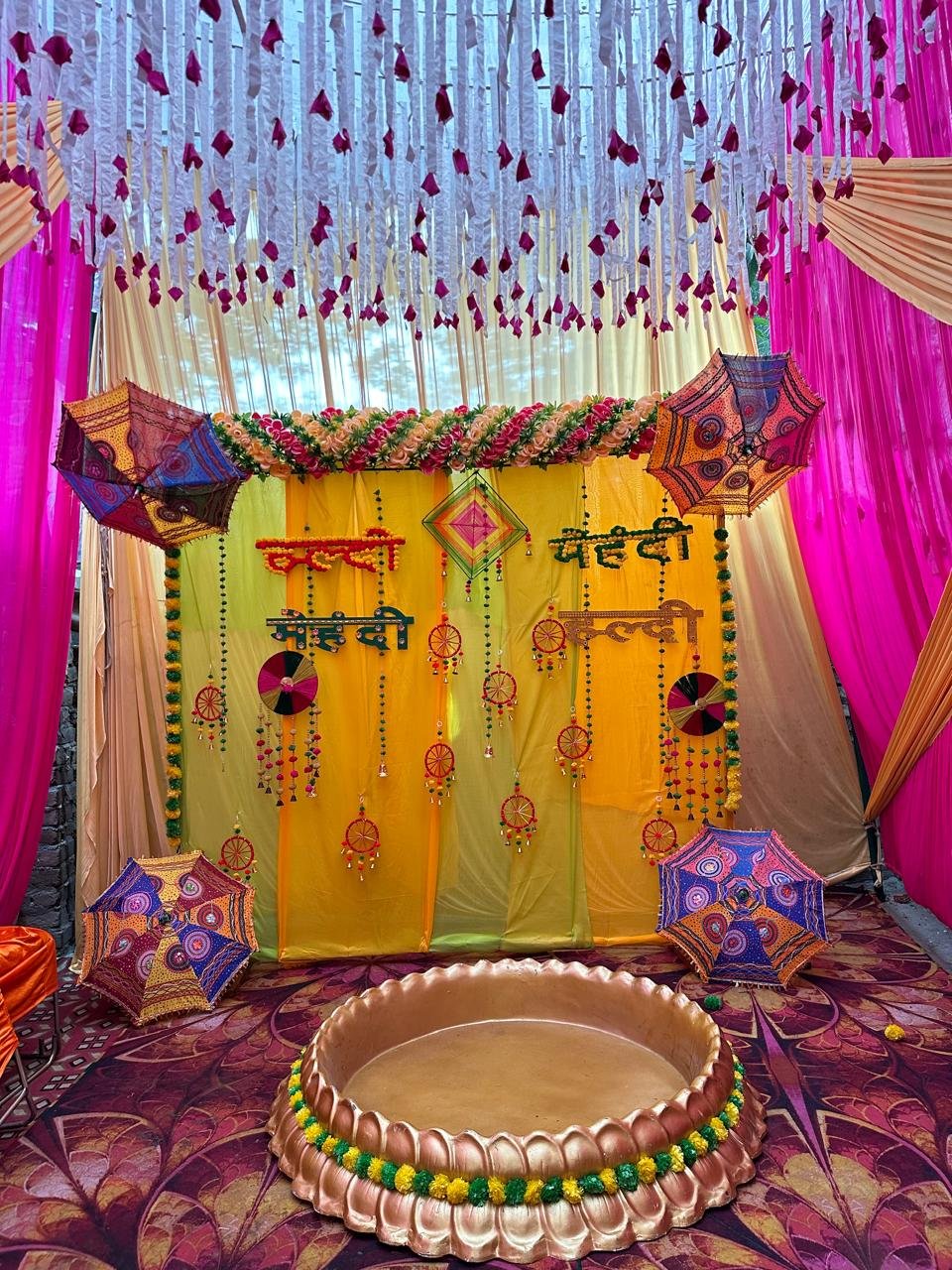 We use high-quality flowers, fabrics, and decor elements that add elegance to your Haldi and Mehndi.