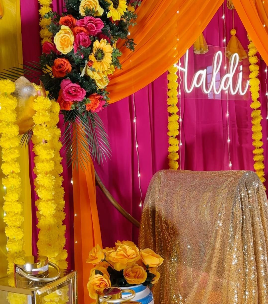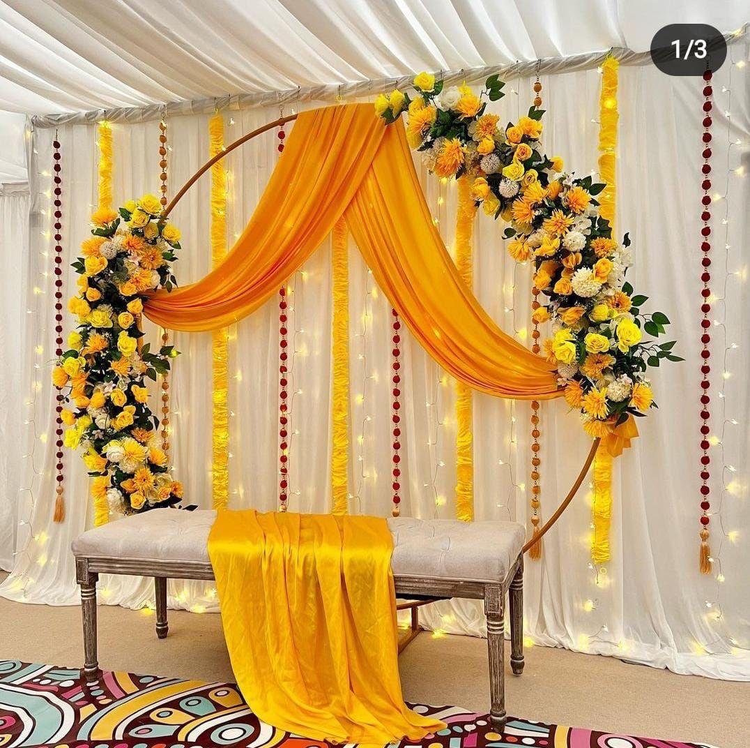 The Haldi ceremony is all about brightness, vibrancy, and joy. Our Haldi ceremony decor includes: