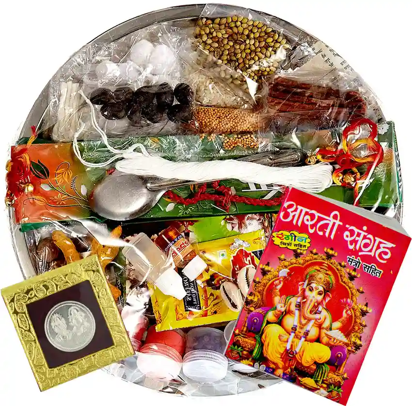 Housewarming & Griha Pravesh Samagri – A special pujan kit for housewarming ceremonies, including offerings for the new home, like rice, betel nuts, and mango leaves.